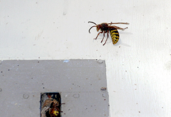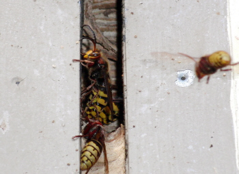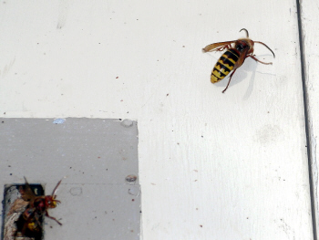 Vom Versorgungsflug zurückkehrende Hornissen werden immer wieder