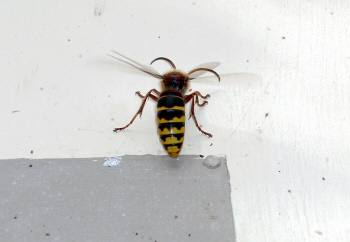 einzige Hornisse nach dem Nest sucht. Sie kam zu spät vom