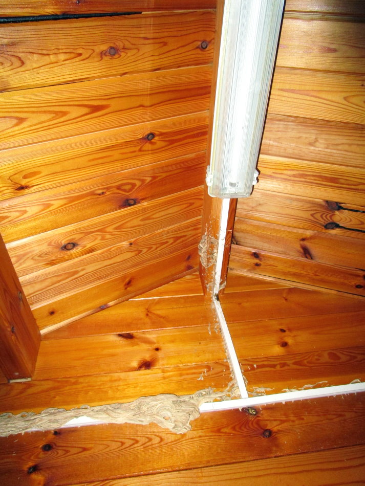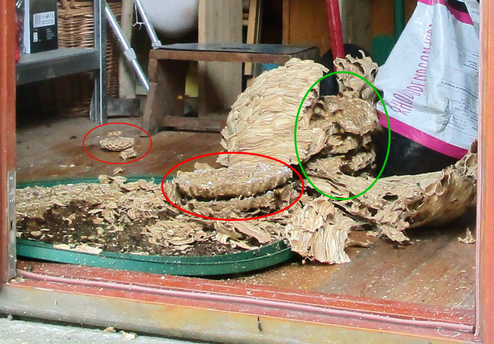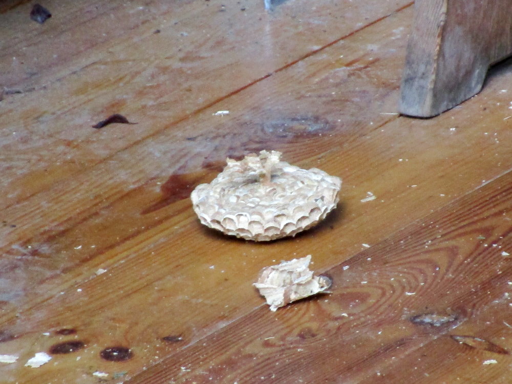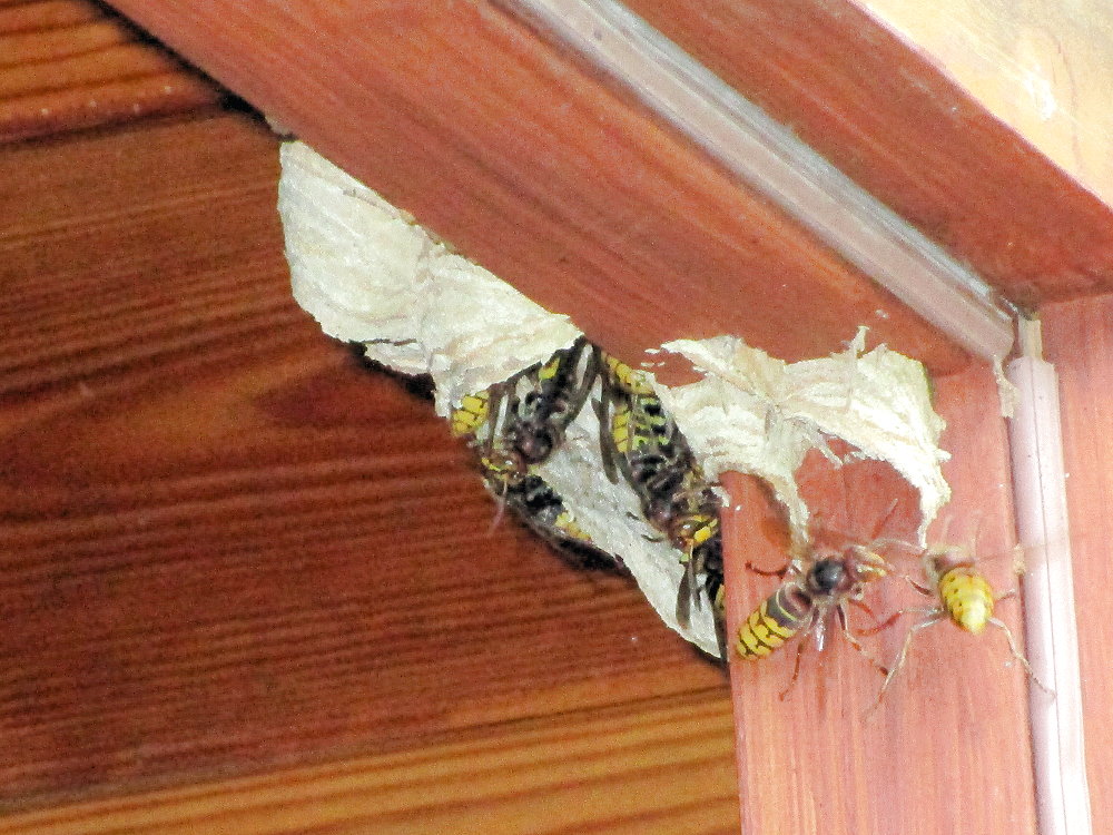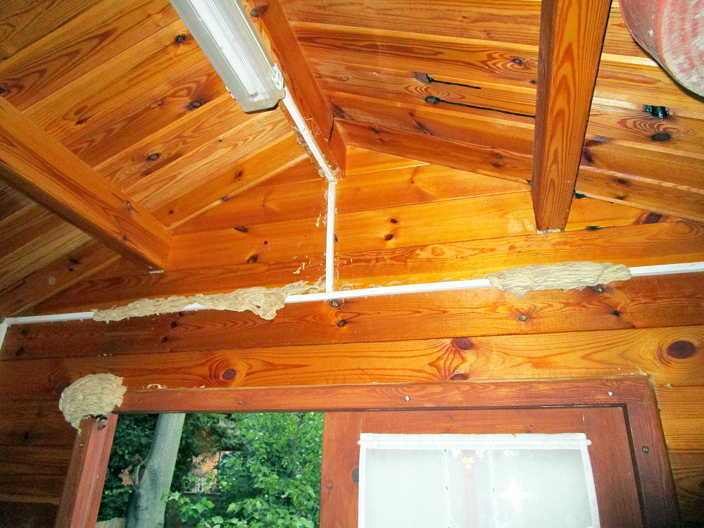 Entdeckt - Im Gartenhaus beginnen Hornissen mit dem Bau einer kleinen