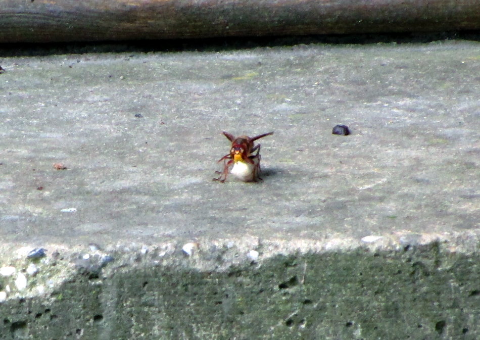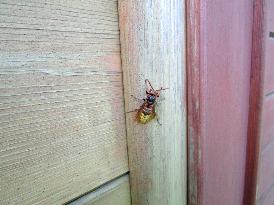 Vor dem Gartenhaus befliegen sich die Hornissen, nehmen Geruchsstoffe
