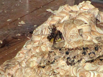 Auf der Nesthülle sitzt heute eine Hornissenkönigin.