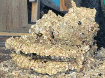 In diesem Holz-Gartenhaus hat eine handvoll Hornissenarbeiterinnen damit