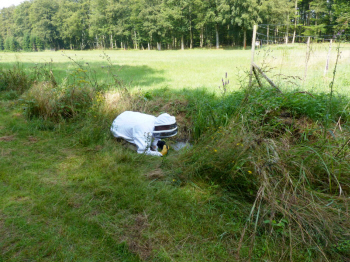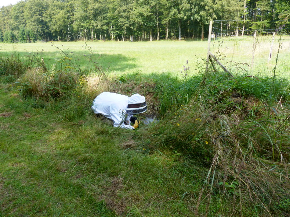 einem Wassergraben, in der Böschung neben dem Fußweg, befindet sich das Nest der