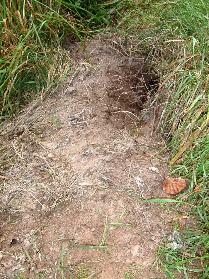 Hier wurde gegraben und der Nesteingang erweitert. Wenn man näher