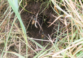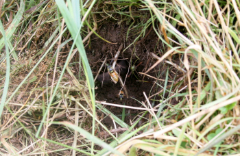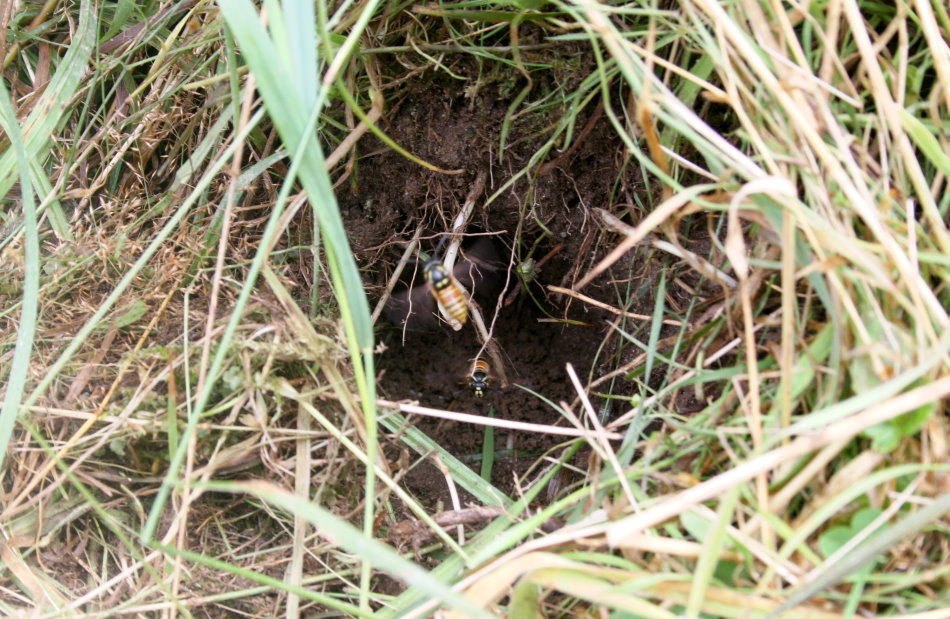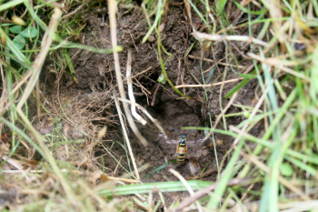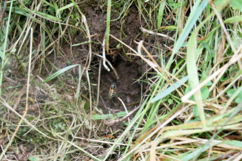 aus, als ob die Wespenkönigin ein altes Kaninchenloch ausgewählt hatte, um im