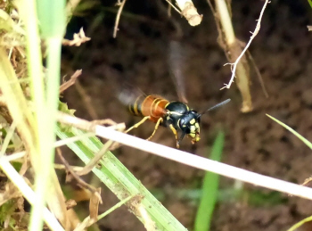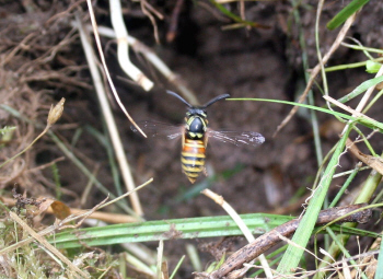 der Roten Wespe entfernt entdeckt Hans massiven Wespenflugverkehr. Hier