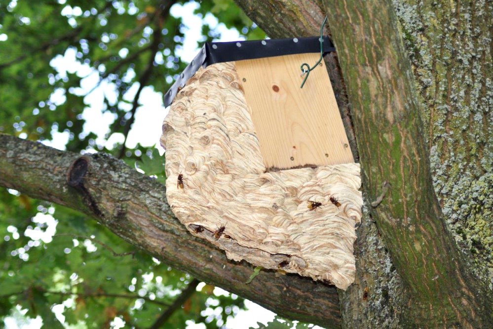 Vogelnistkasten noch genügend Platz für das Hornissennest.