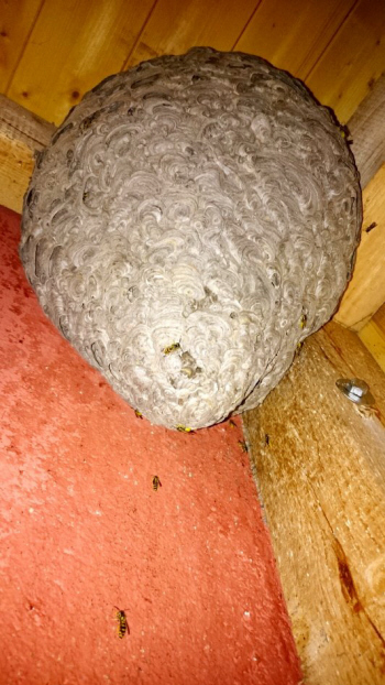 das recht groß dimensionierte Nest - die Deutsche Wespe.