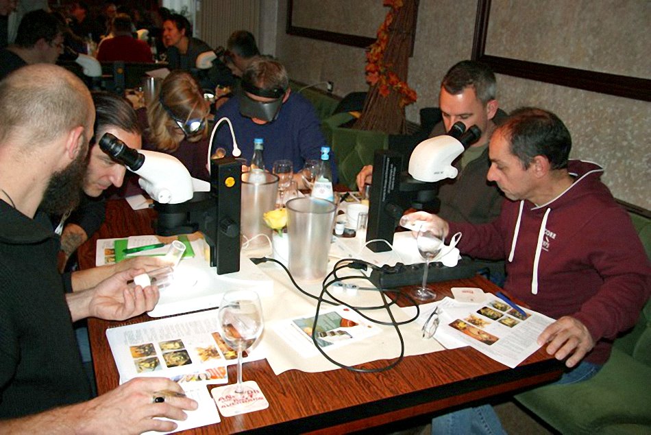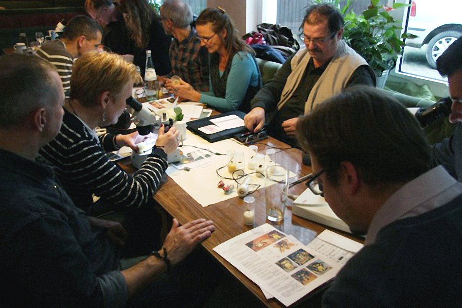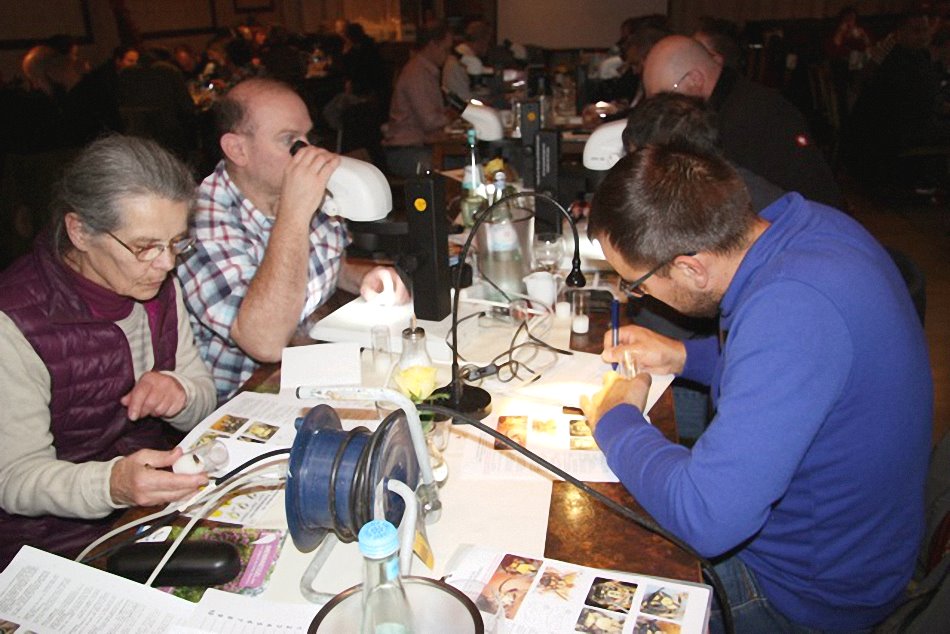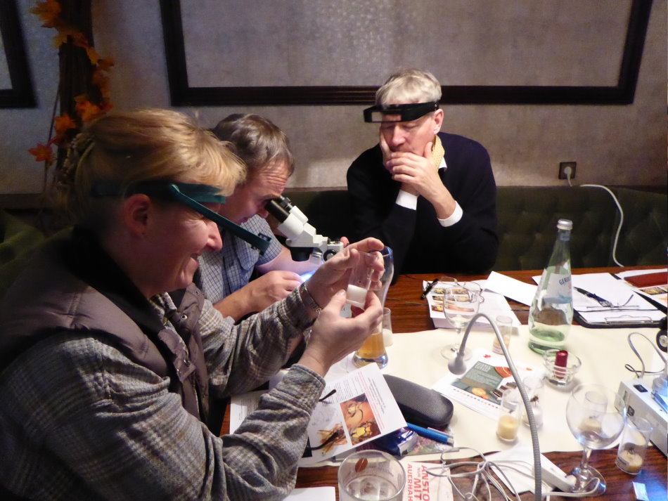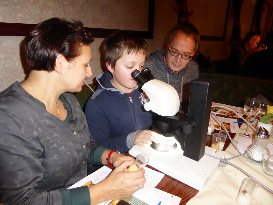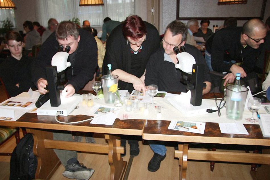 Mithilfe von Binokular-Mikroskopen und anhand von mitgebrachten Präparaten,