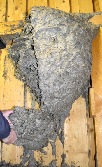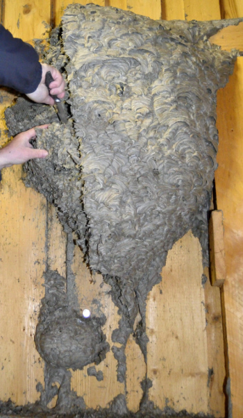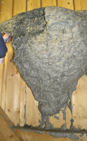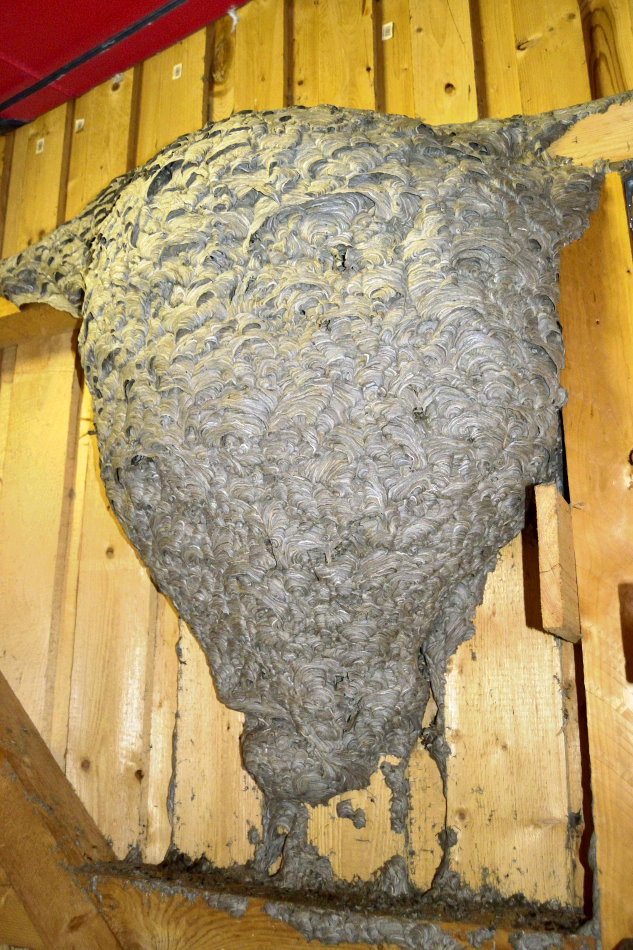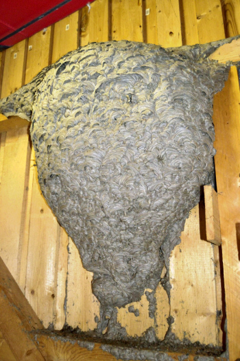 Ein riesiges Nest der Deutschen Wespe hängt nun, am