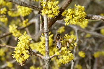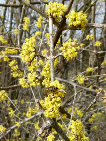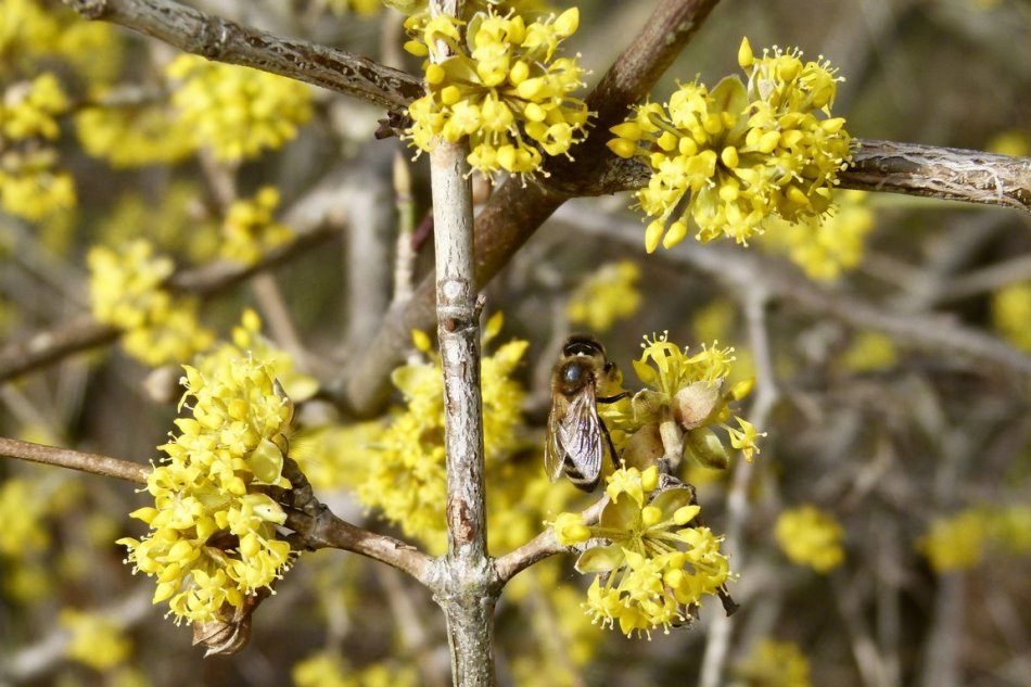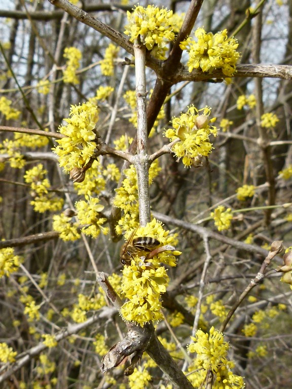 ersten Wildbienen aus der Winterstarre. Die Blaue Holzbiene fliegt schon.