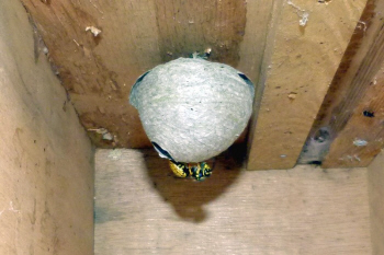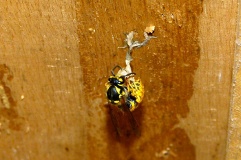 Königin einer Deutschen Wespe mit der Nestgründung.