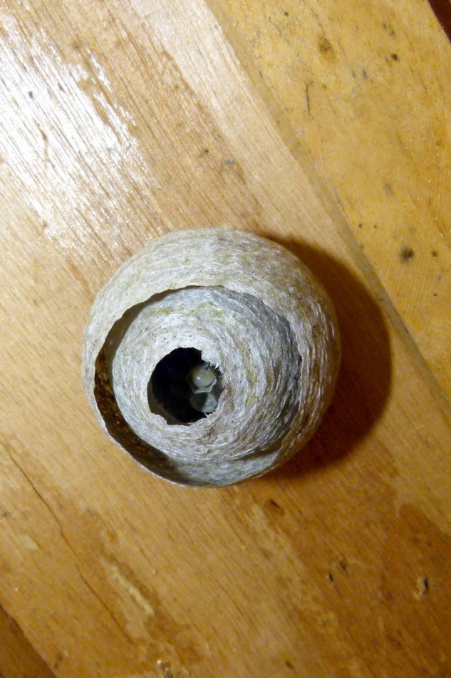 spannt sich ein kleiner Schirm, als Teil der Nesthülle, über die sechs