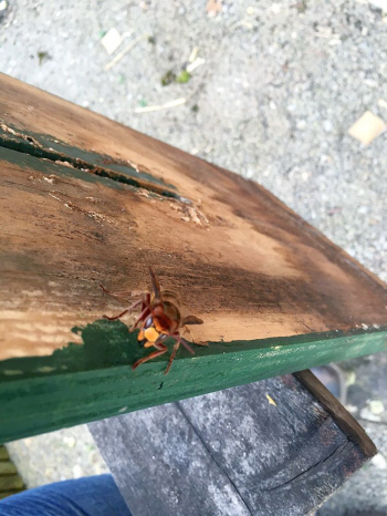 Hornissenkasten aufgehängt und heute befindet sich bereits eine Königin