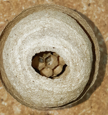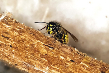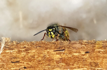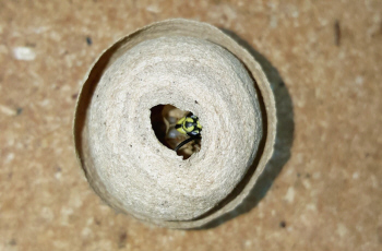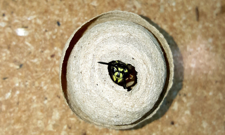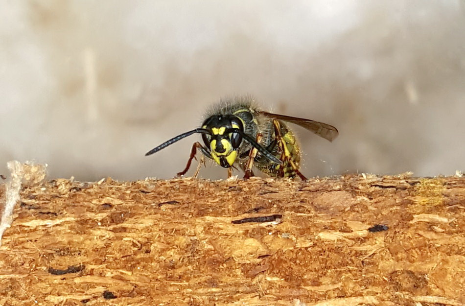 klamme und träge Wespenkönigin und mittig des Deckels die kleine