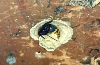 Hier wohnt bereits eine Sächsische Wespe ... |