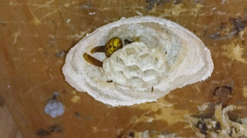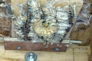 heute seine erste Hornissennestgründung in großen Hornissenkasten, der