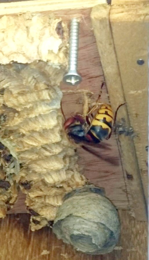 Hornissennestgründung in einem seiner Lockkästen gefunden.