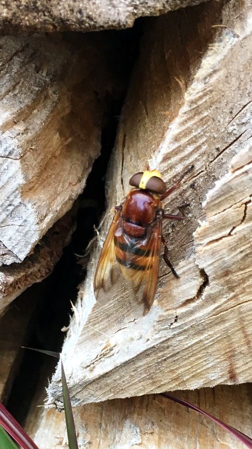 Hornissenschwebfliegen leben im "Abfallhaufen" unter einem
