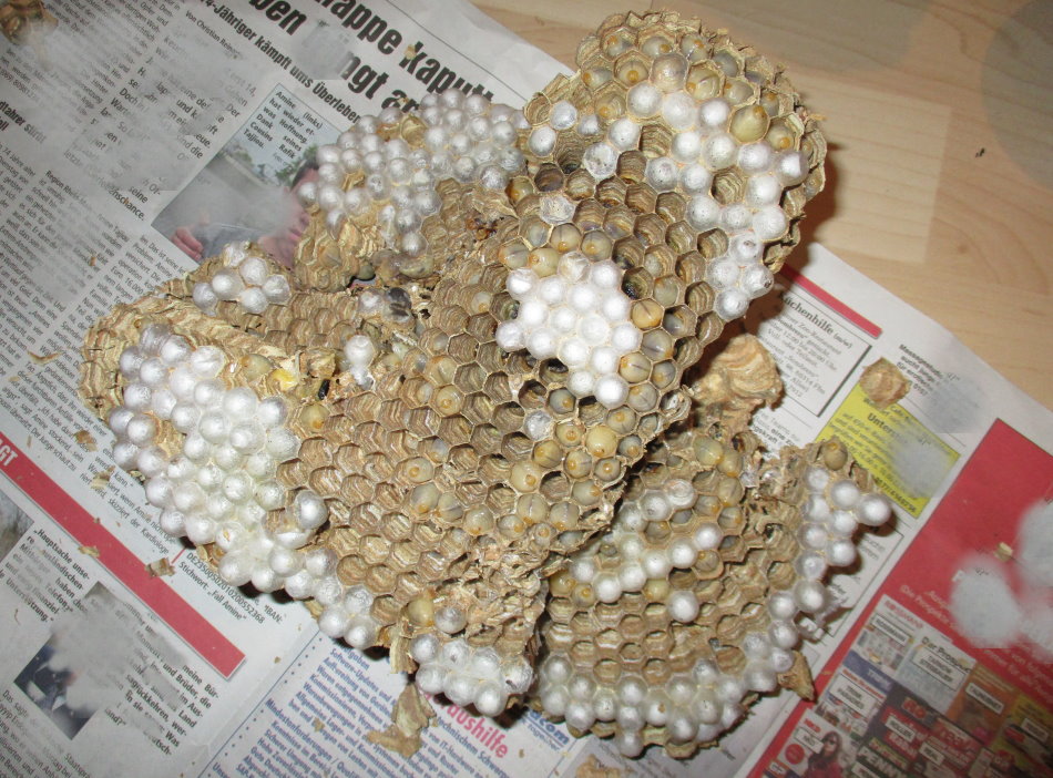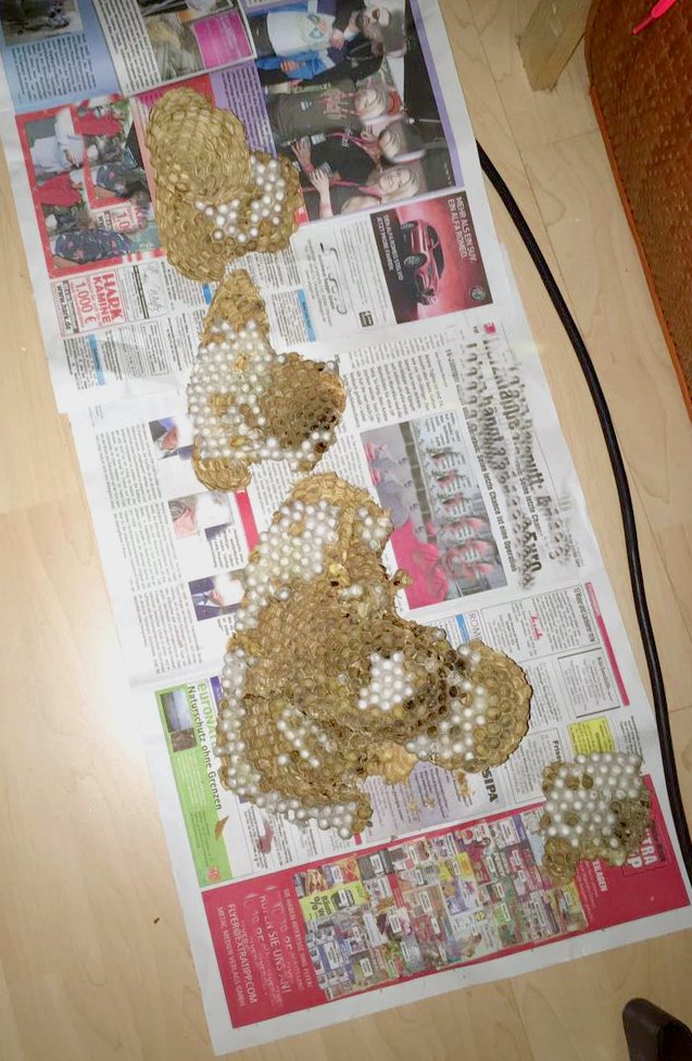 Hornissennest ist freigelegt und man hat einen Einblick in den