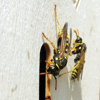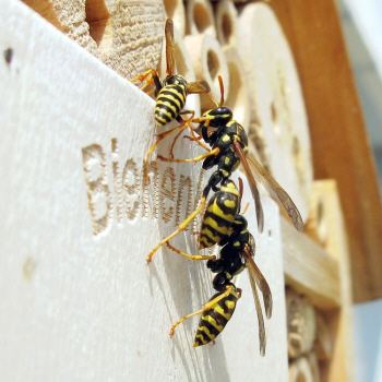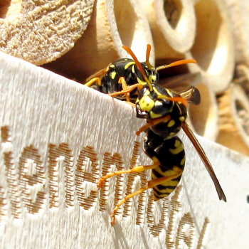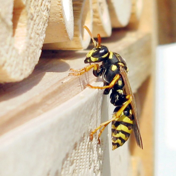 Abflug der ersten Geschlechtstiere vom Feldwespennest beobachten.