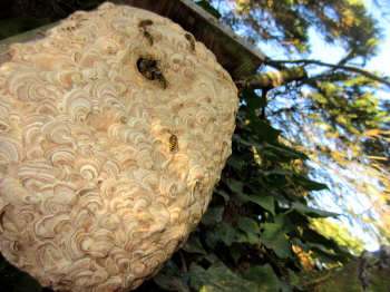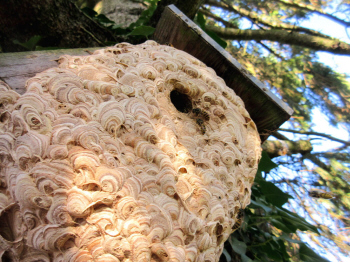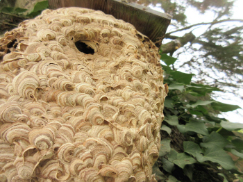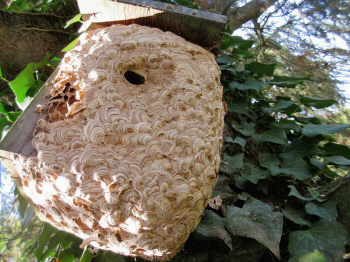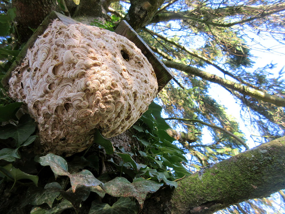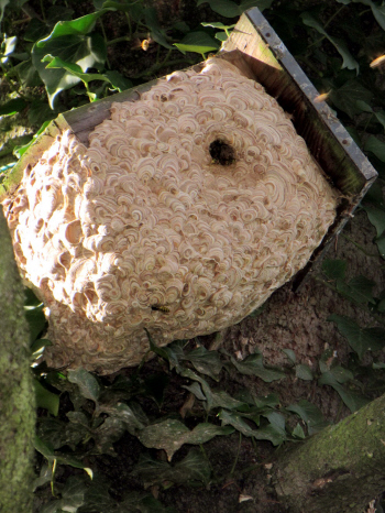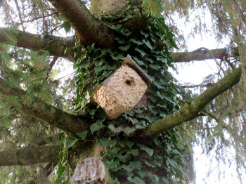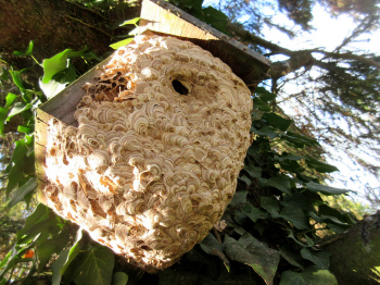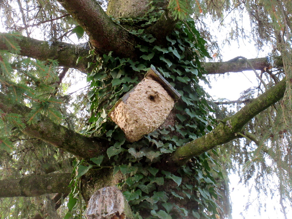 Arbeiterinnen verlegten somit das Nest vor den Vogelkasten. So
