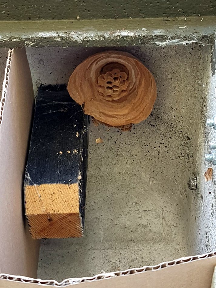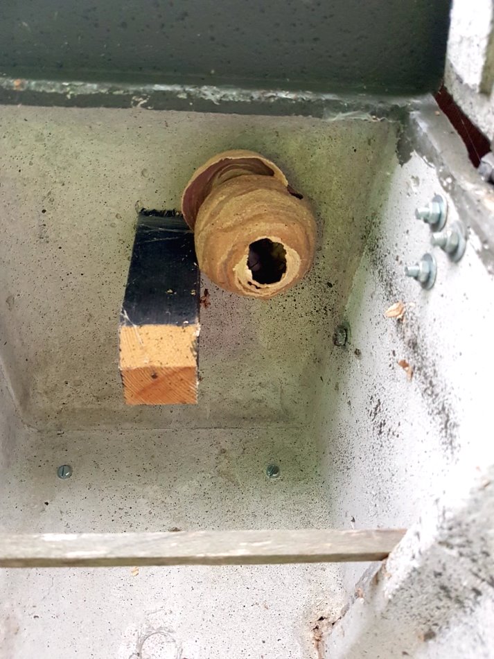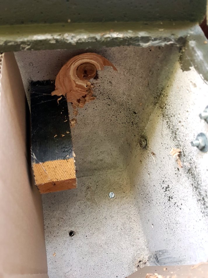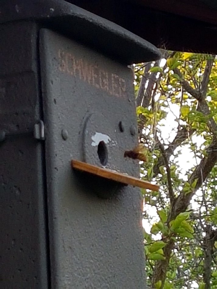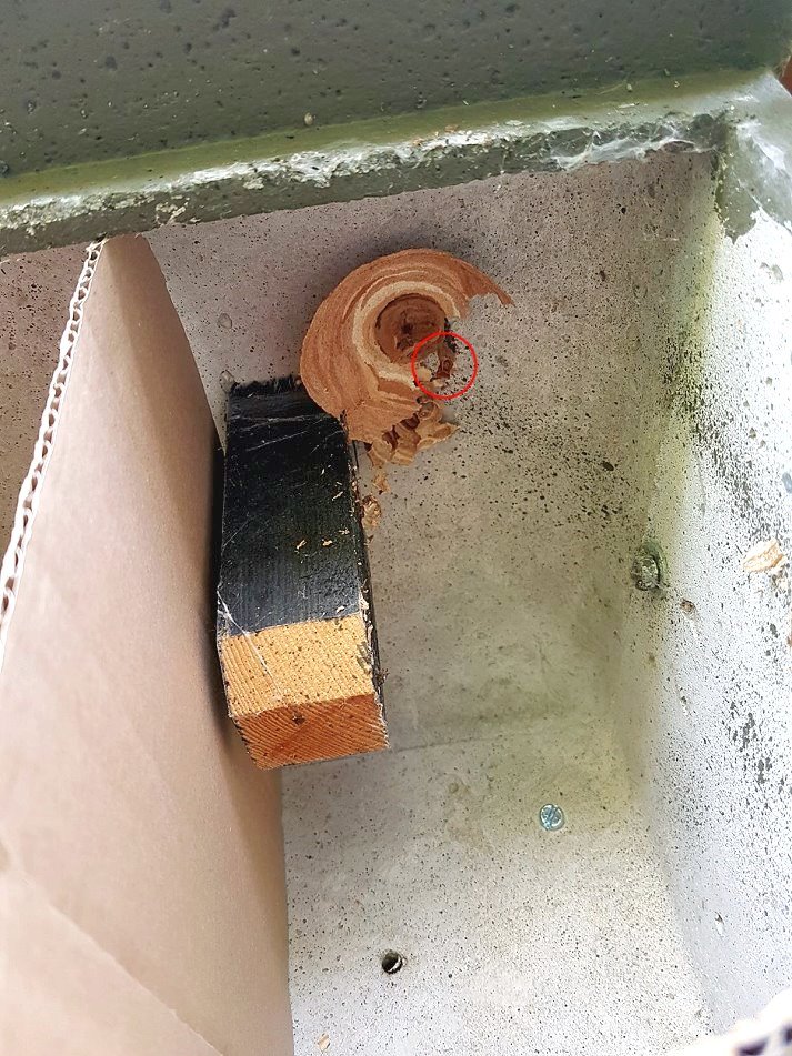 24.06.18 Das untere Einflugloch wurde mit Baumaterial