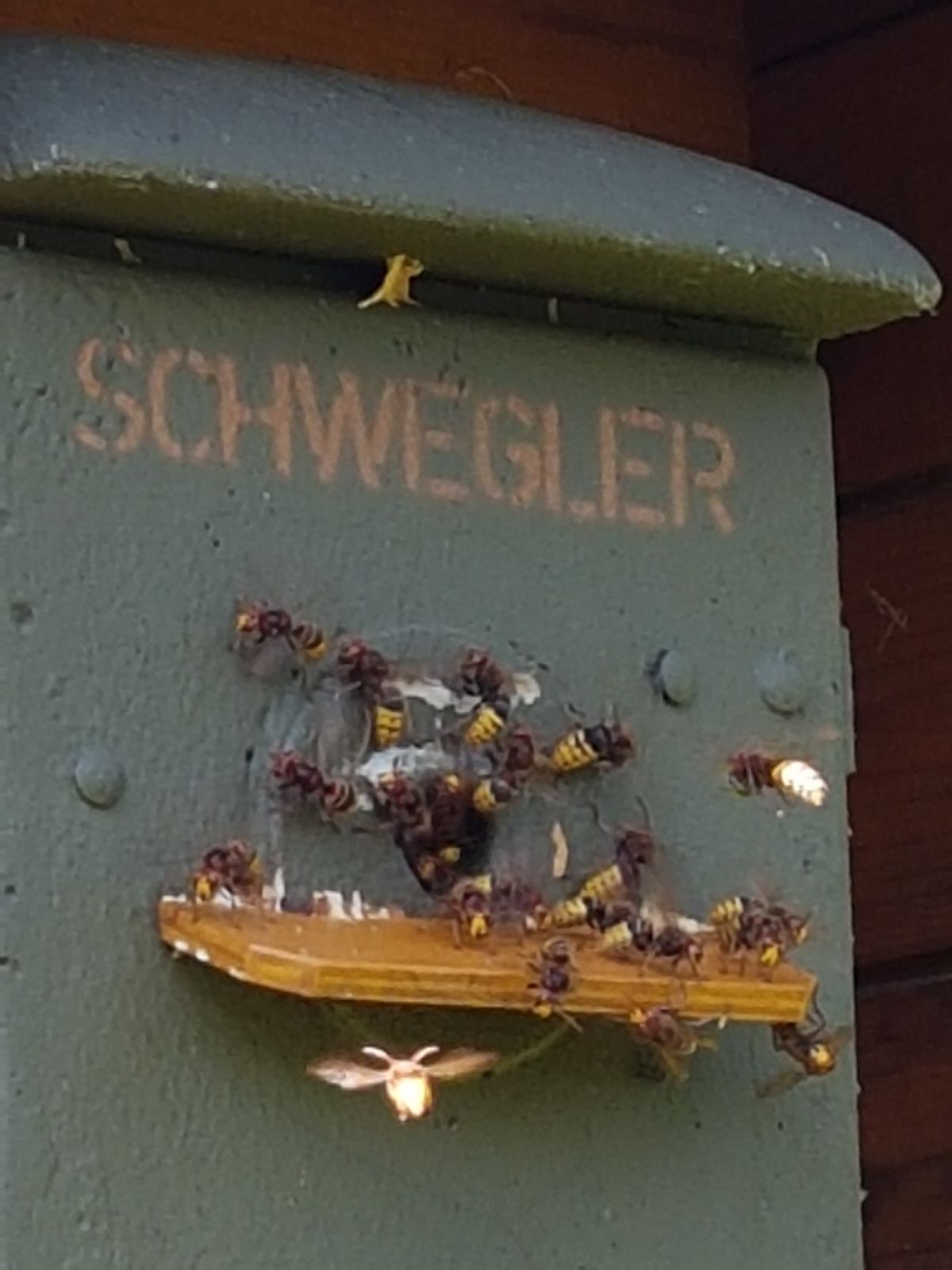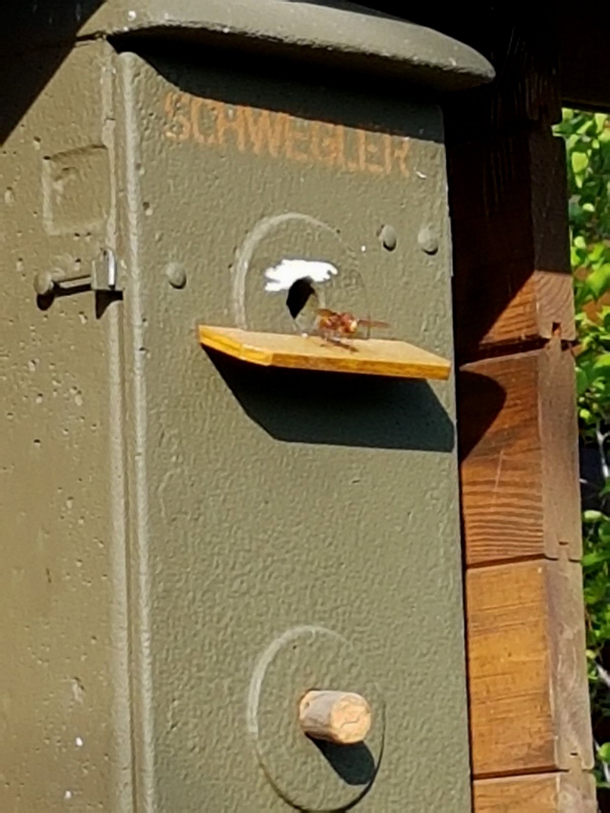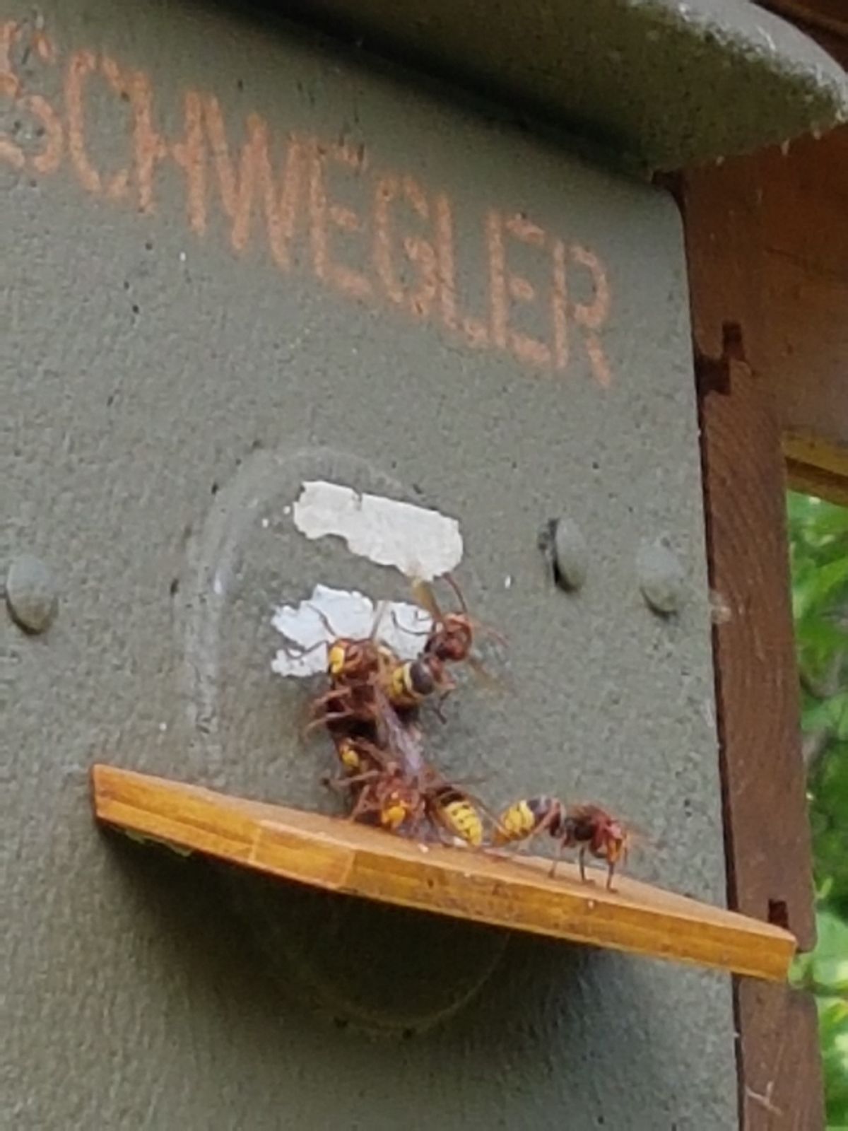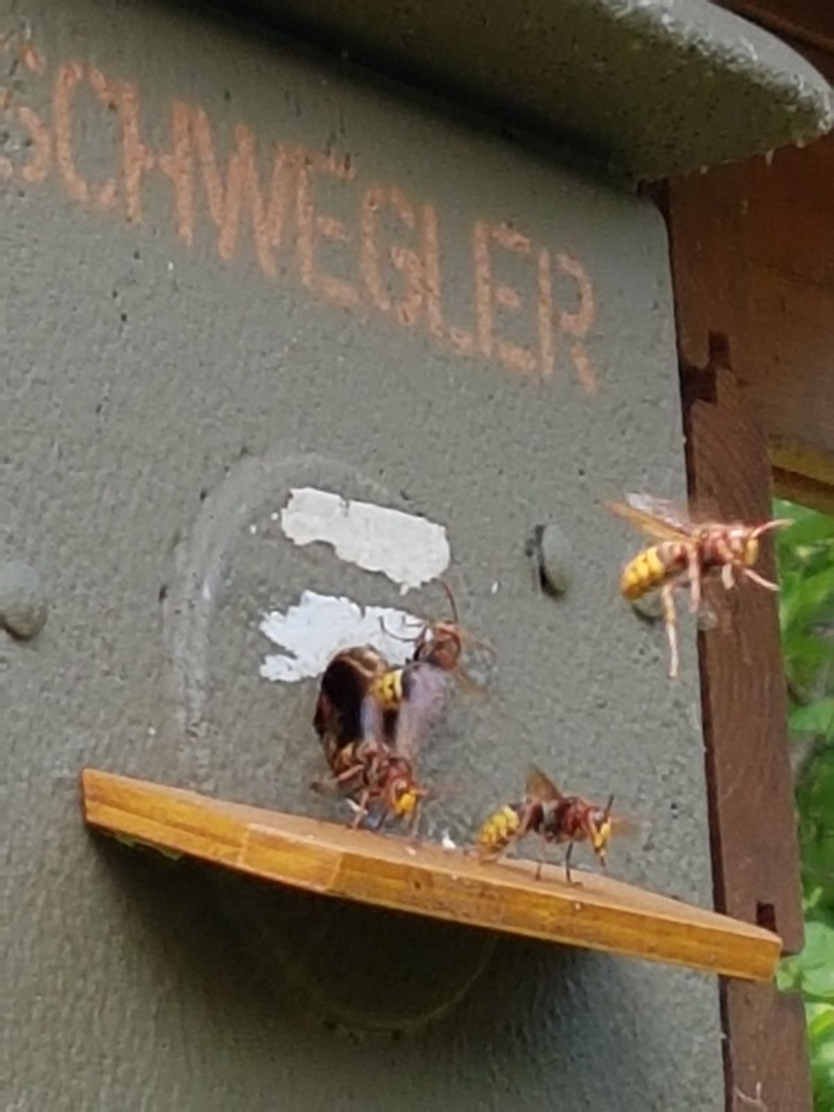 Die Männchen fliegen nun massiv um den Hornissenkasten und in der