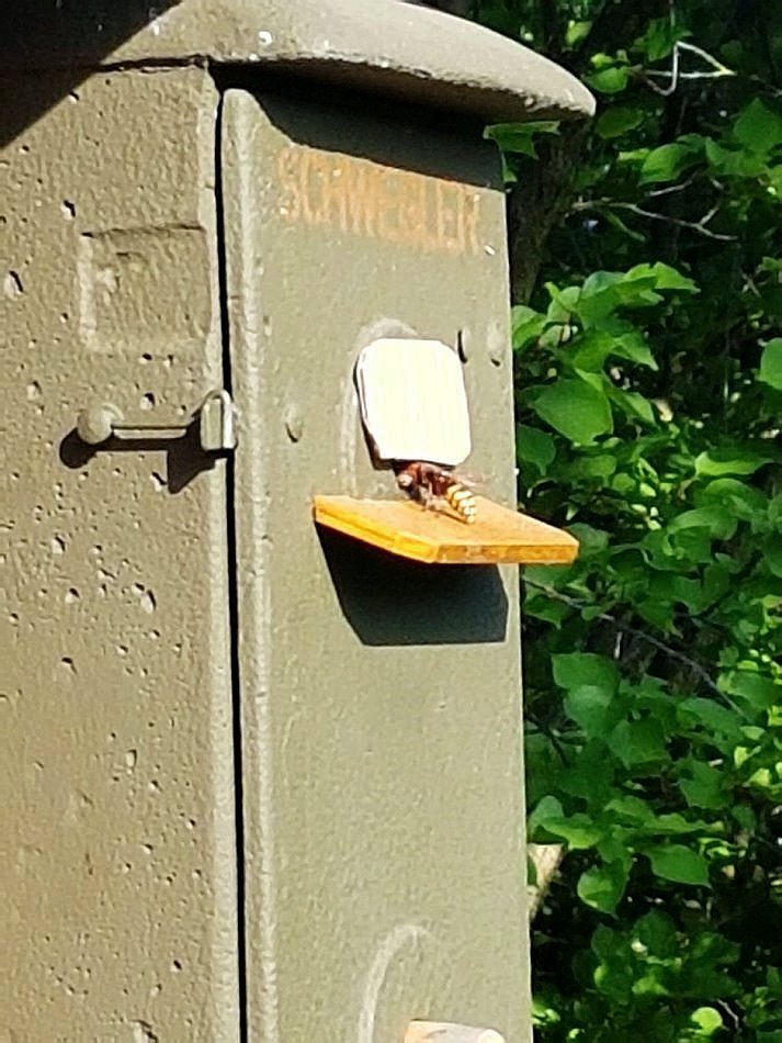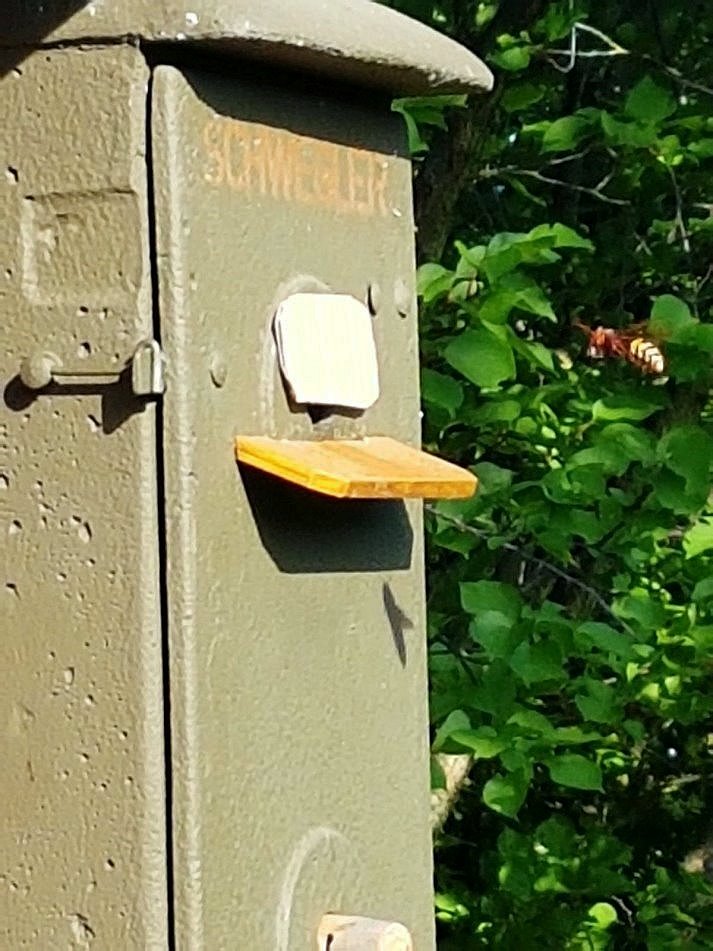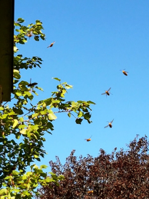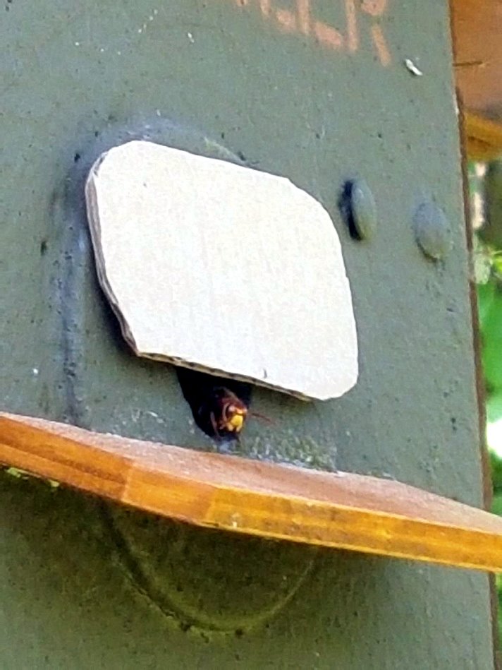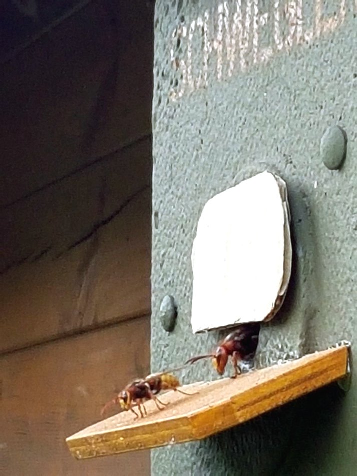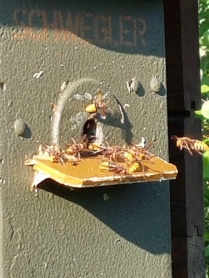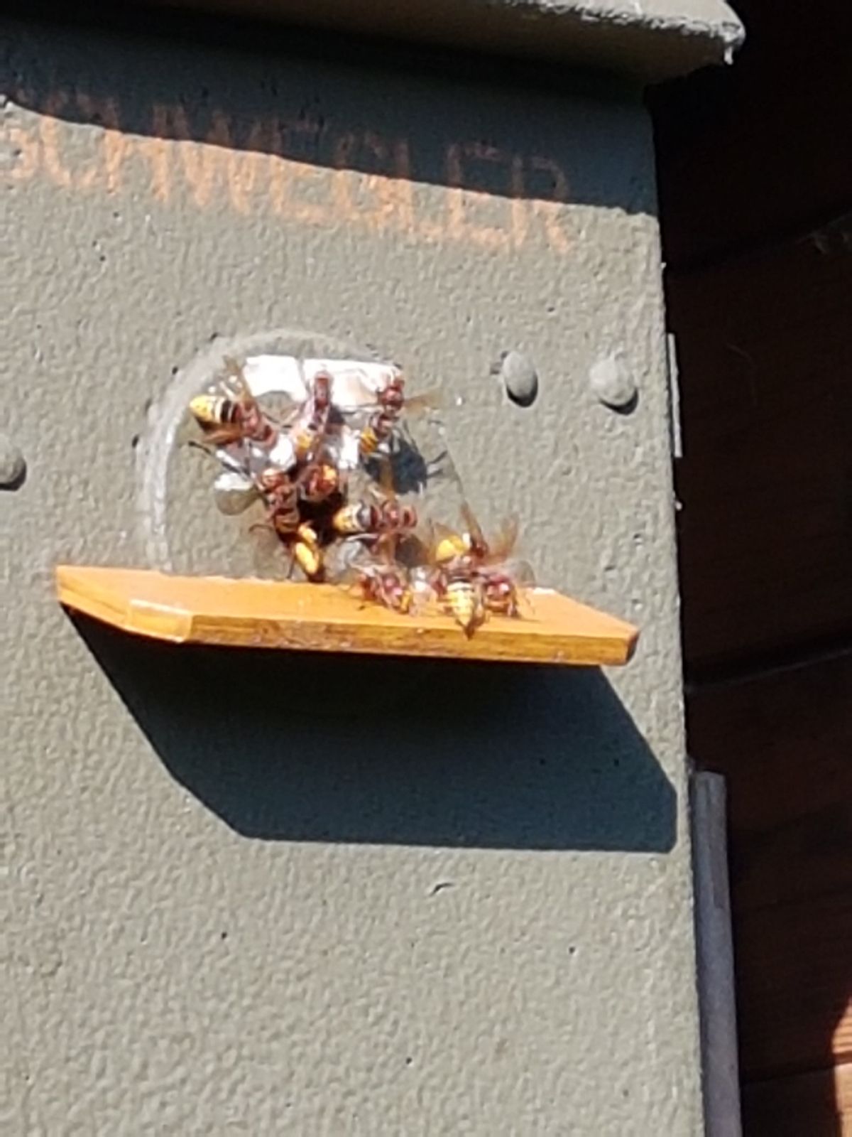 Die Männchen fliegen nun massiv um den Hornissenkasten und in der