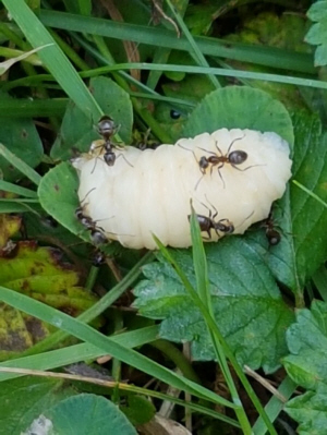 fette Hornissenlarven sitzen, die ständig nach Futter betteln. Das