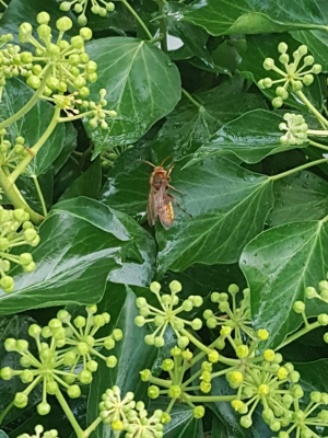 Nektar am blühenden Efeu getankt. Das gibt neue Energie und versüßt die