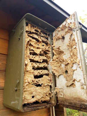 "Hornissen-Filialnest", im Gartenhaus von Robert Poperl
