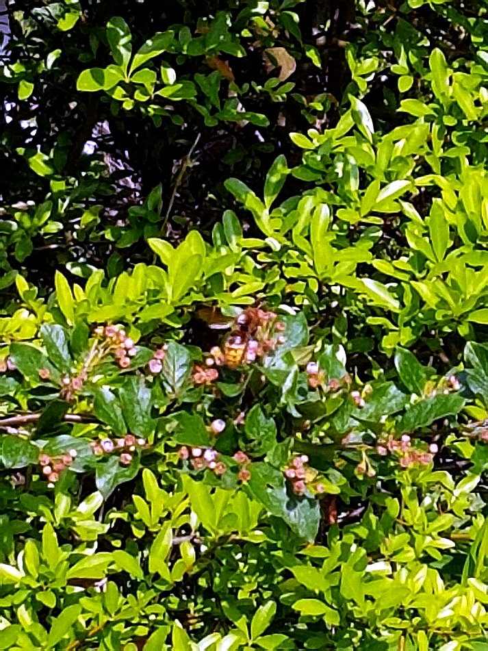 Zwischendurch wird auch mal am benachbarten Cotoneasterstrauch Nektar