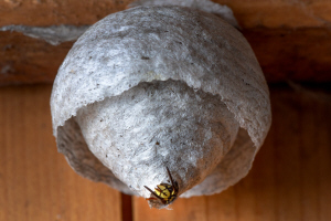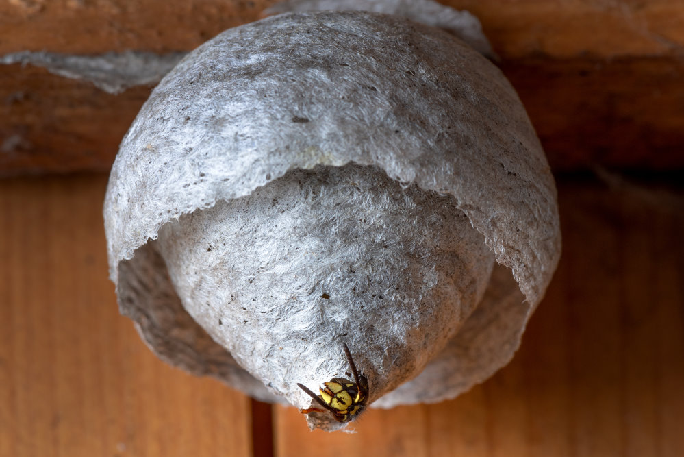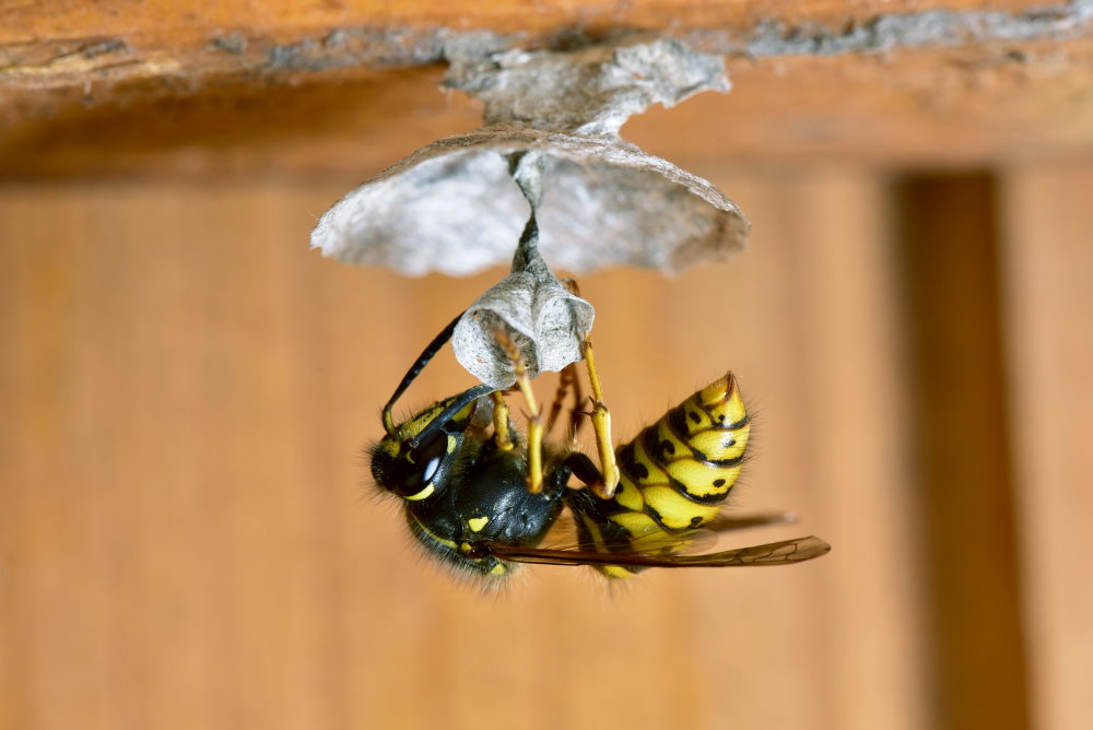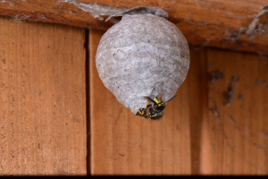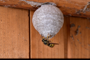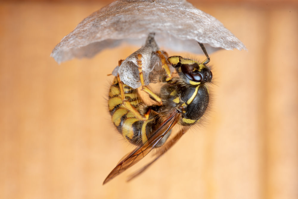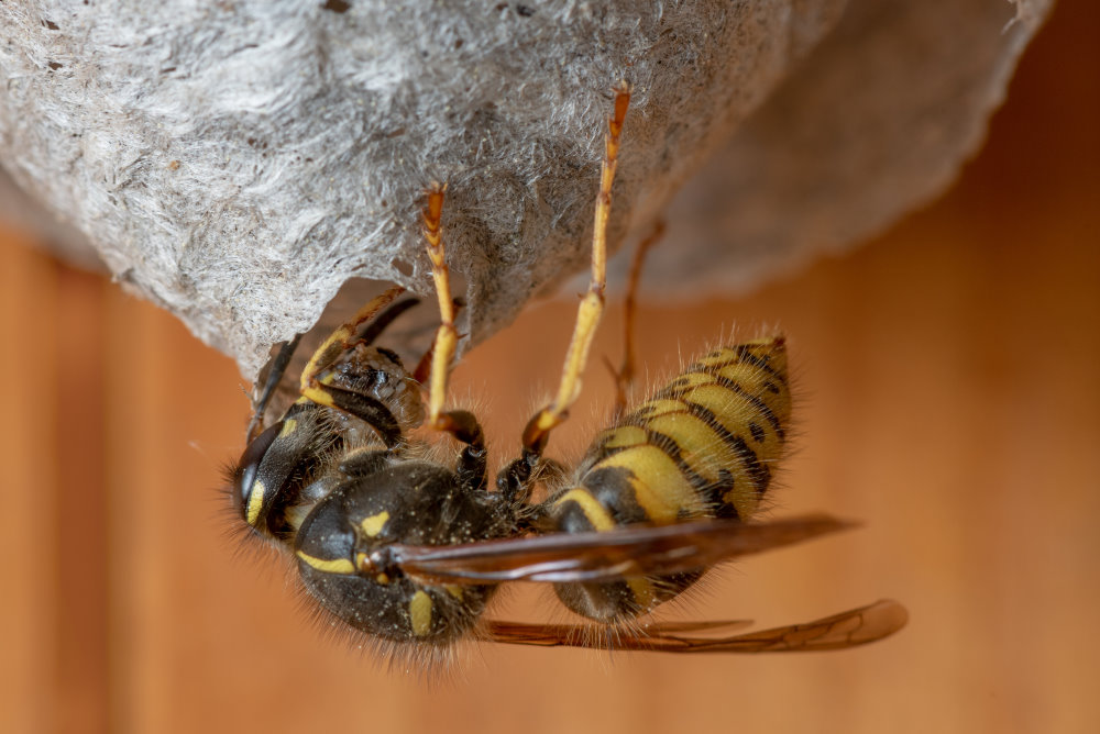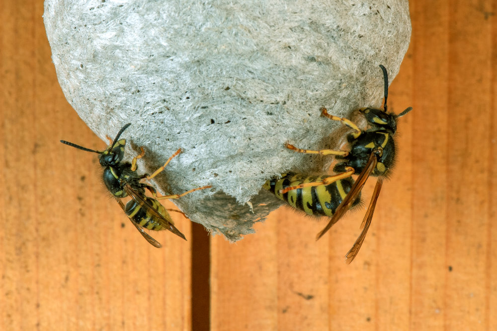 Wespenarbeiterinnen beobachten, die eifrig ihr Nest versorgen. Die