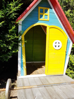 könnte - Holz-Spielhaus, frei hängend und gut sichtbar ...