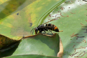 Ja, das ist doch die neue Hornissenart, die fleißig Nektar sammelt und