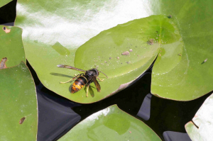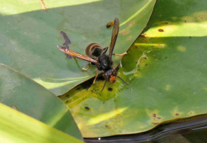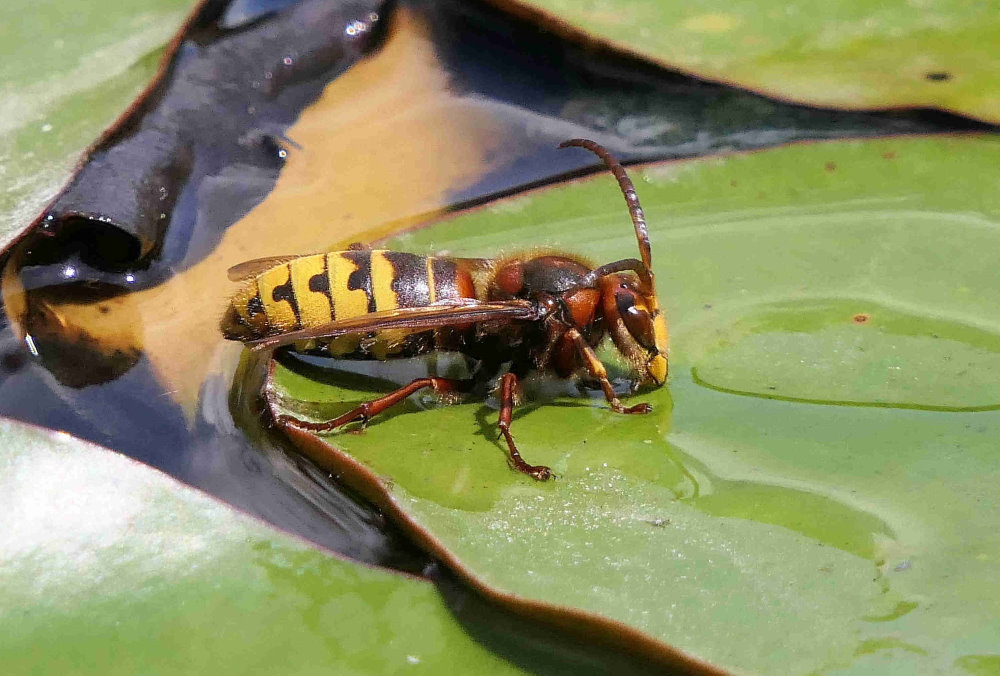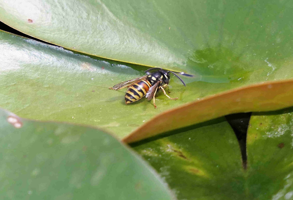 Natürlich nutzen die heimischen Wespenarten ebenfalls das kühle Nass ...