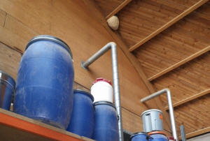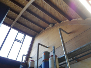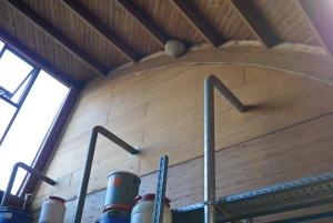 Frei hängend, gut sichtbar in der Lagerhalle