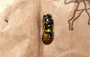 Hier wurde eine Königin der deutschen Wespe, in typischer Winterhaltung,