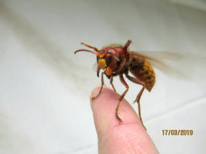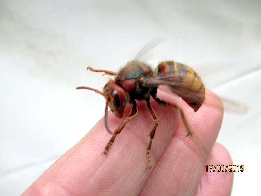 Die erste Hornissenkönigin der Saison 2019, entdeckt von Tom Heiduck, in Söllingen (Pfinztal) bei Karlsruhe.