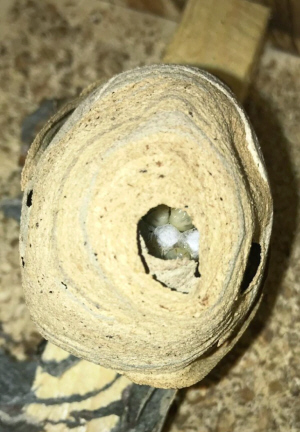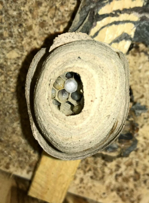 quartiert Thomas das junge Nest der Gemeinen Wespe, in einen geräumigen