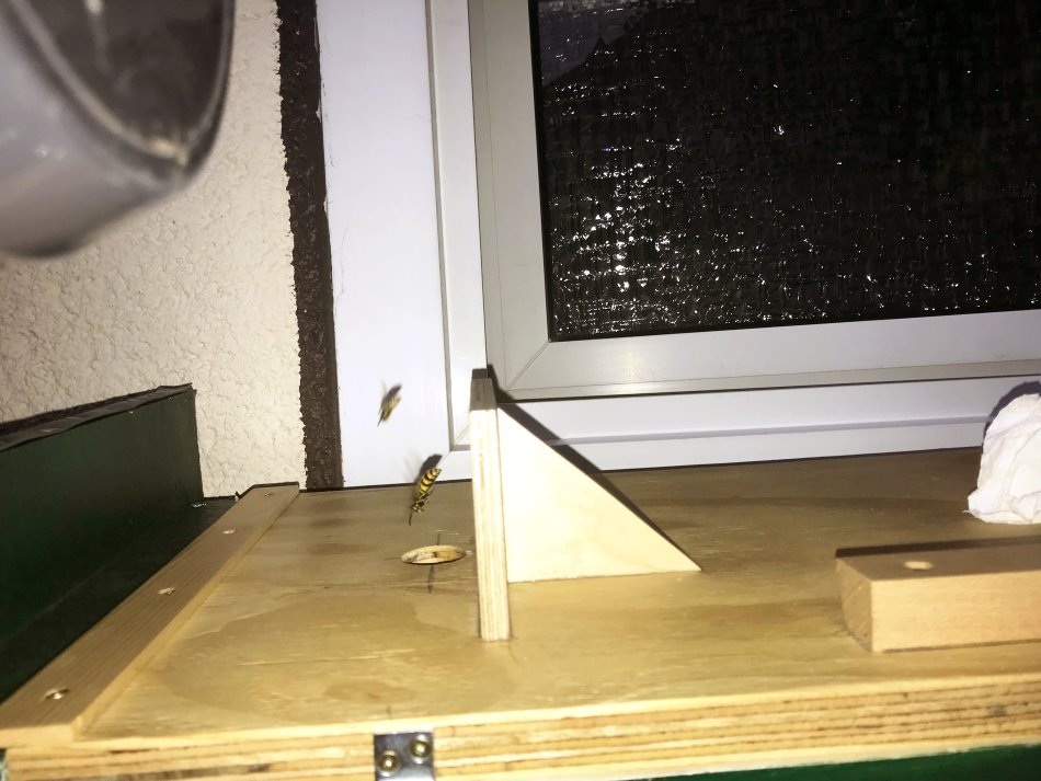 Gemeinen Wespe im Hornissen-Lockkasten,