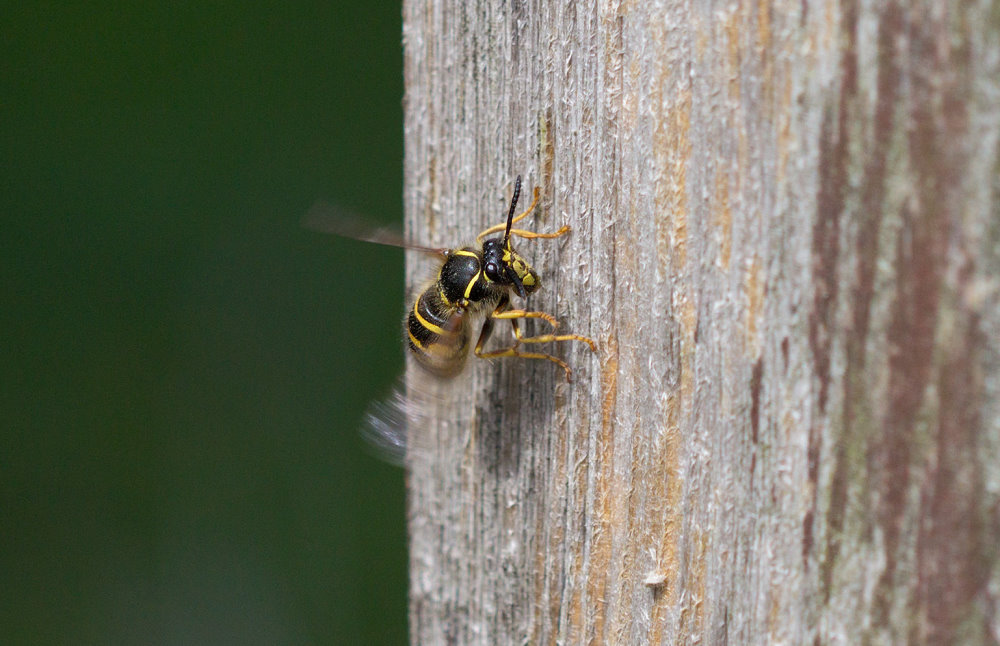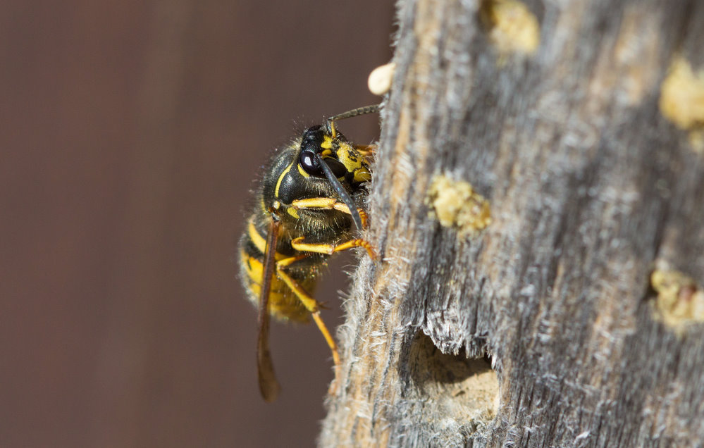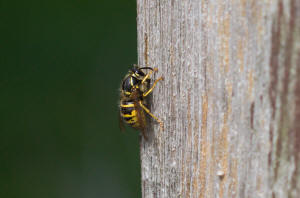 bestäubt sammelt jetzt die Königin der Sächsischen Wespe Baumaterial an