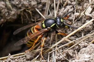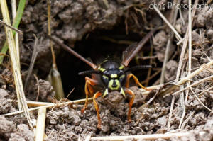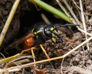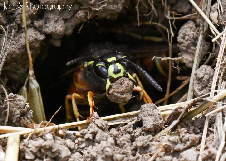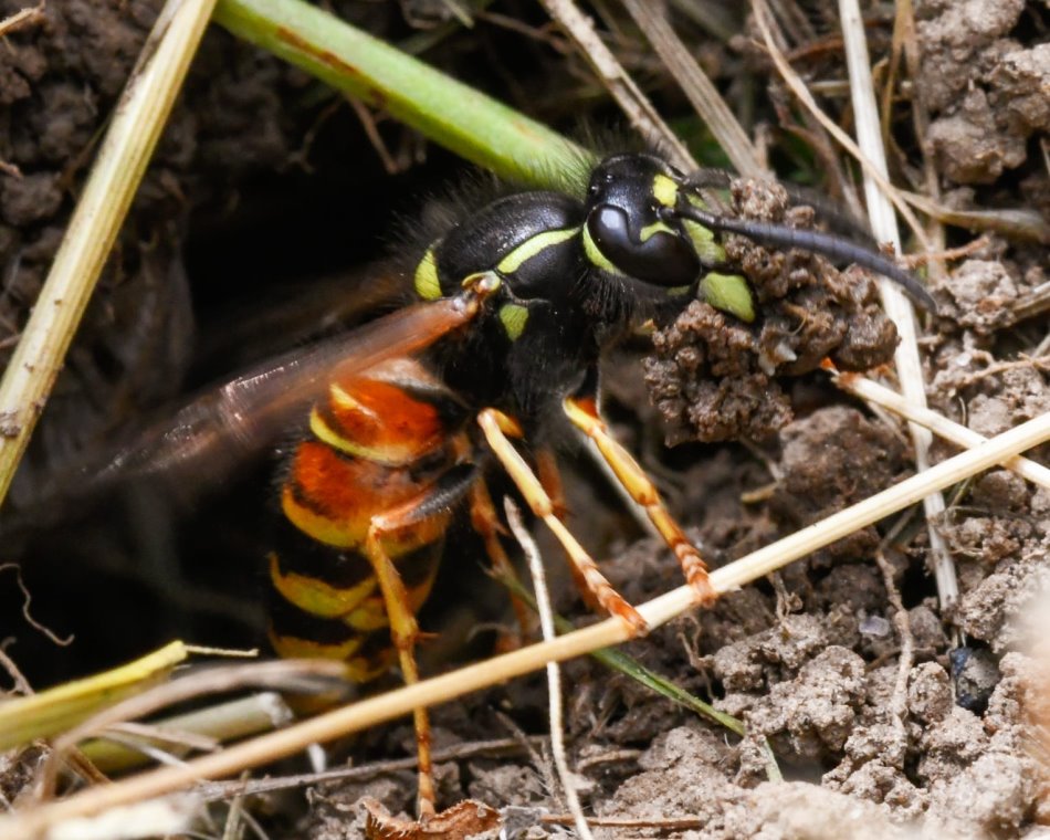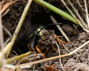 Erdloch, befindet sich der Neststandort einer Roten Wespe.