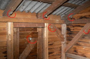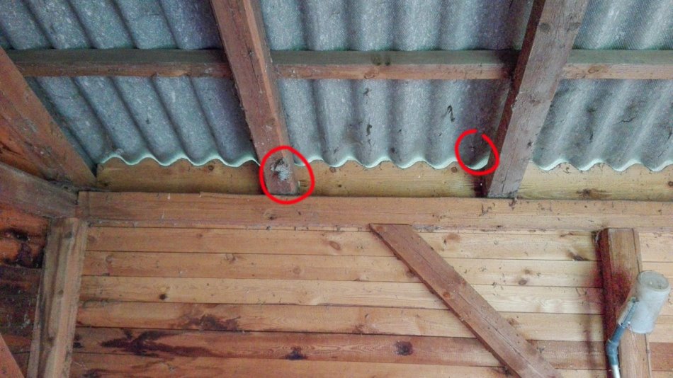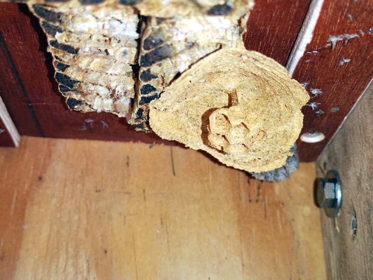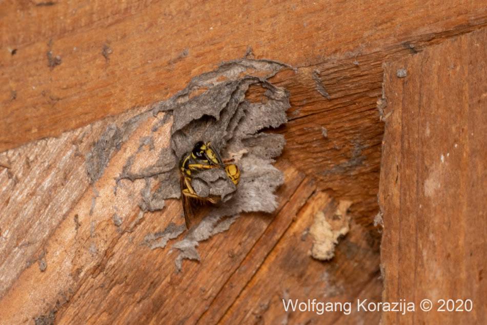 Nestgründung der Mittleren Wespe am Balken