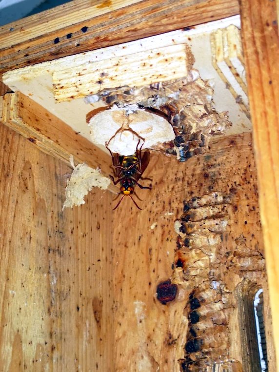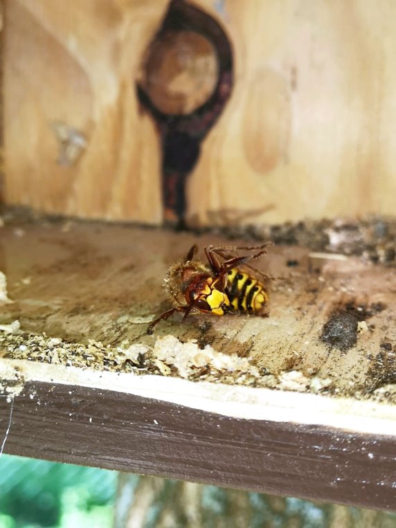 war, siedelte Thomas das Wespenvolk in einen großen Hornissenkasten auf