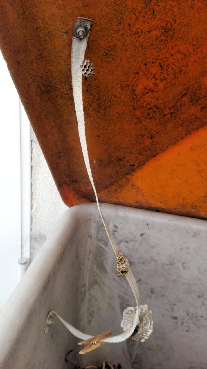 Müllbehälter die Nestgründung mehrerer Feldwespennester.