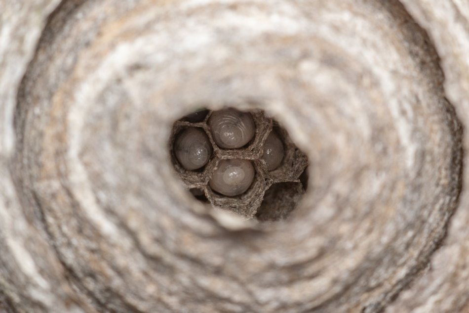 Die zweite Nesthülle ist angefangen und im Inneren sind die ersten Eier