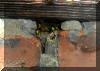 Durch den, in der Zwischendecke bestehenden, aber dennoch von der Höhe sehr geringen Hohlraum (ca. 20 cm), können hier nur etwa 4 - 5 Wabenetagen angelegt werden. Gegenüber anderen Nestern besitzen diese Wabenteller jedoch einen weitaus größeren Durchmesser. |