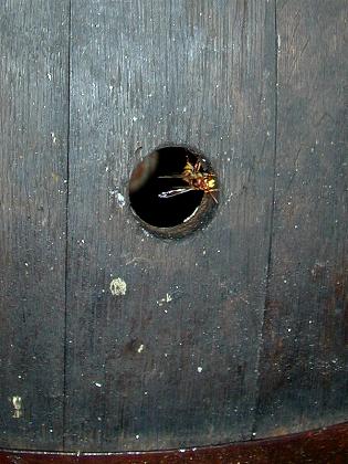 Während einer Grillfeier unter der Pergola, wurde Herr R., der sich als "Grillmeister" betätigte, von einer Hornisse in die Hand gestochen. Allerdings stand der Grill keinen halben Meter vom Weinfass entfernt, mitten in der Einflugschneise der Hornissen.
